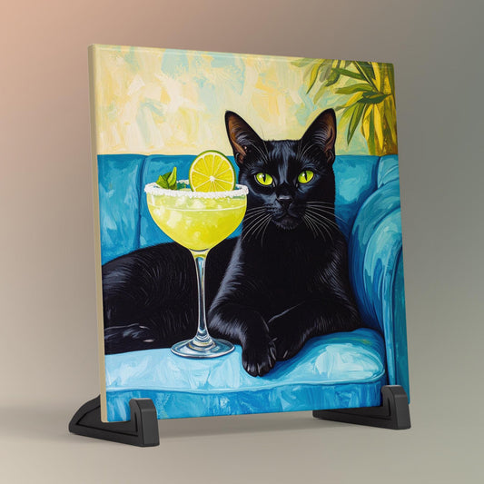 Cat Margarita Ceramic Tile Art | Bar Cart Decor | Cat Print, Retro Kitchen Decor | Trendy Wall Art | Dining Room Print