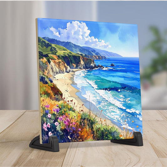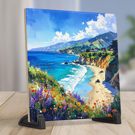 California Coastal Ceramic Art Tile, Ocean View Decor, Perfect for Coastal Living Spaces, Unique Gift for Beach Lovers
