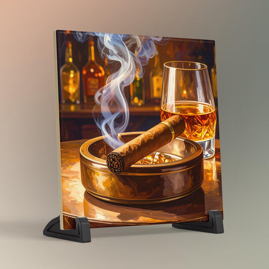 Cigar and Whiskey Ceramic Tile Art | Bar Cart Decor | Gift for Him | Trendy Wall Art | Man Cave Decor | Father's Day Gift