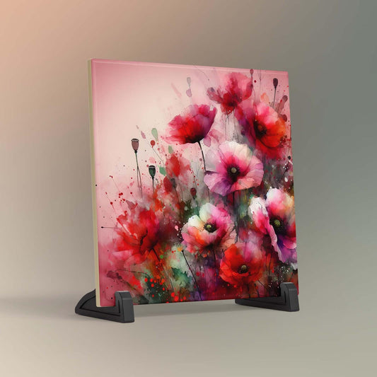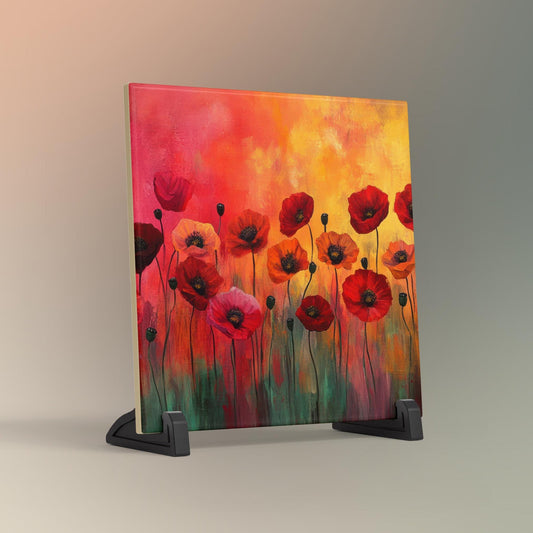 Colorful Poppies in the Field Ceramic Art Tile | Wildflowers Wall Decor | Spring Home Decor | Floral Art | Whimsical Flowers | Gift for Mom