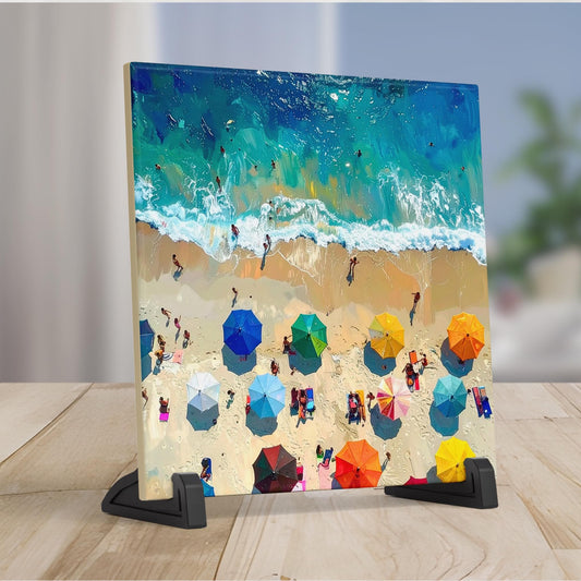 Colorful Beach Art Tile - Vibrant Aerial Scene of Summer Fun - Ideal Wall Decor for Beach Homes - Great Gift for Ocean Lovers
