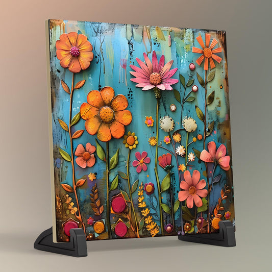 Abstract Wildflower Ceramic Tile | Wall Decor | Spring Home Decor | Floral Art | Whimsical Flowers | Wall Art Tile | Gift for Mom
