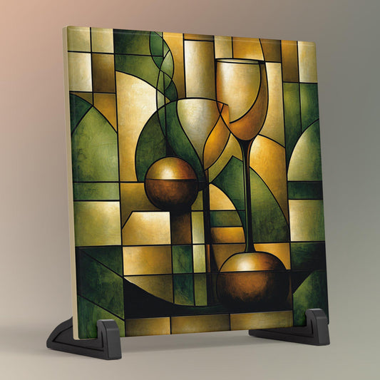 Abstract Wine Glass Ceramic Tile Art | Unique Decorative Tile for Home Bar | Stylish Housewarming Gift for Wine Lovers | Kitchen Decor