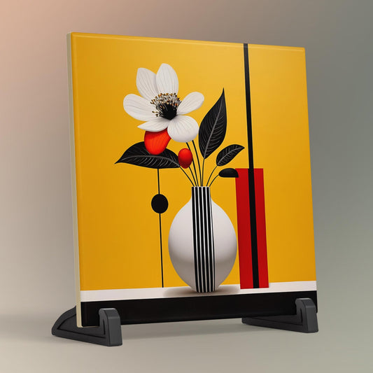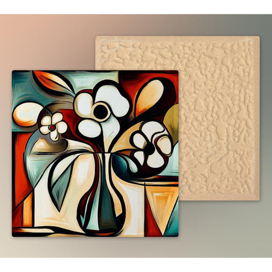 Abstract Floral Tile Art | Picasso Inspired Flowers in a Vase Wall Decor, Unique Colorful Home Accent & Housewarming Gift for Art Lovers