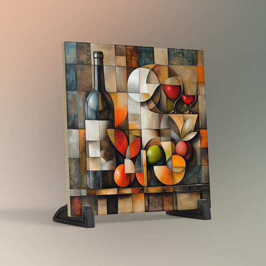 Abstract Wine Bottle & Glass Ceramic Tile Art | Unique Decorative Tile for Home Bar | Stylish Gift for Wine Lovers | Kitchen Decor