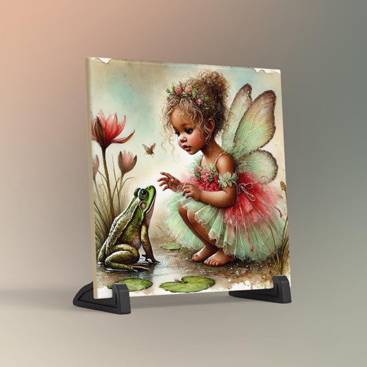 Adorable Fairy Princess Ceramic Tile | Whimsical Nursery Decor for Children's Room | Perfect Baby Shower Gift