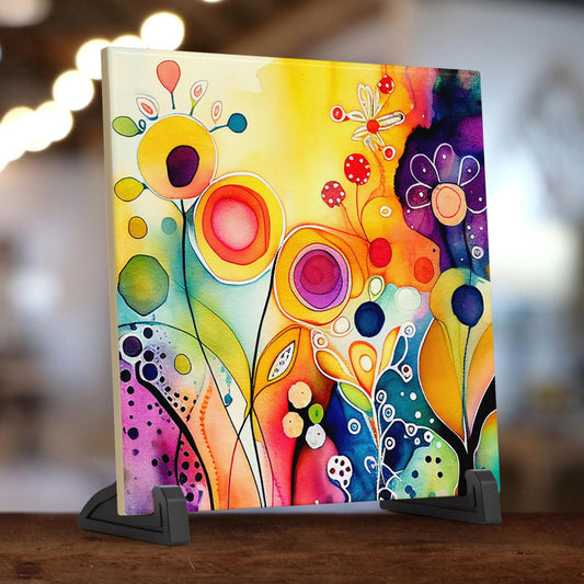 Abstract Wildflower Watercolor Ceramic Art Tile | Wall Decor | Spring Home Decor | Floral Art | Whimsical Flowers | Wall Tile | Gift for Mom