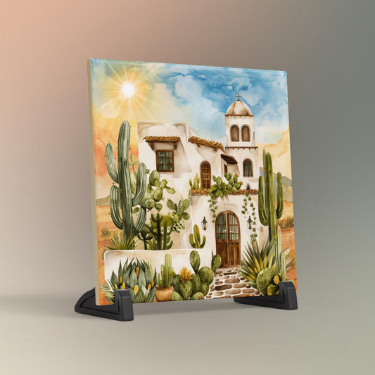 Adobe House Ceramic Tile, Southwest Desert Art for Home Decor, Arizona & New Mexico Wall Decor, Unique Home Southwestern Artwork