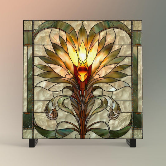 Elegant Lotus Flower Ceramic Tile Art | Stained Glass Look Flower Wall Decor | Yoga and Meditation | Spiritual Mindfulness Gift | Spa Gift