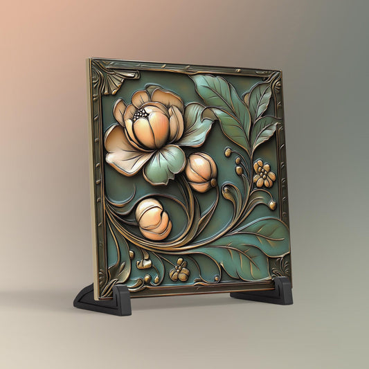 Floral Ceramic Tile Art Nouveau Style, Detailed Flower Design for Stunning Home Decor, Unique Gift for Nature Lovers