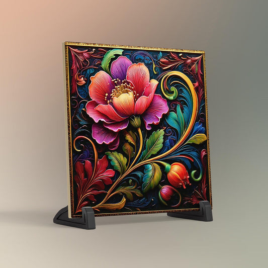 Floral Decor Ceramic Tile Flower Art - Colorful Abstract Wall Hanging - Art Print Ready to Display or Hang - Perfect Home Accent