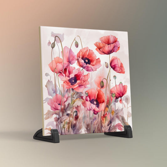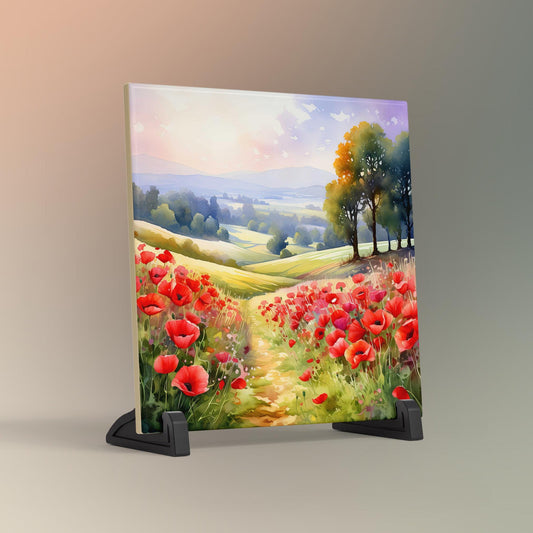 Field of Red Poppies Ceramic Art Tile | Wildflowers Wall Decor | Spring Home Decor | Floral Art | Whimsical Flowers | Gift for Mom