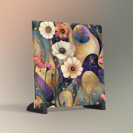 Klimt Inspired Ceramic Art Tile - Flower Art - Vibrant Floral Wall Decor, Home Decor Accent Piece - Ideal Gift for Housewarming or Art Lover