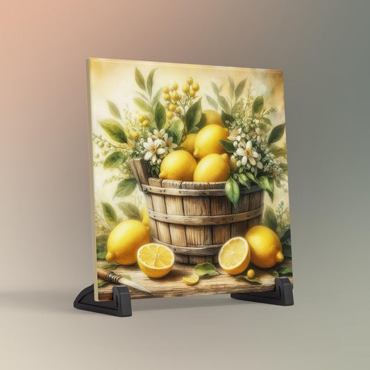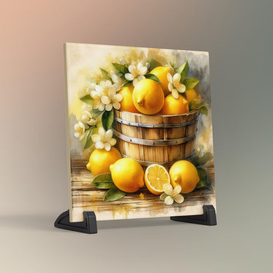Lemons Ceramic Tile Art, Charming Watercolor Lemon Design Tile for Kitchen Decor, Perfect Gift for Foodies