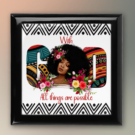 Keepsake Box - Ebony Wood Memory Box - Gift for Her - Jewelry Box - Black Woman Art - Mother's Day Gift - With God All Things Are Possible