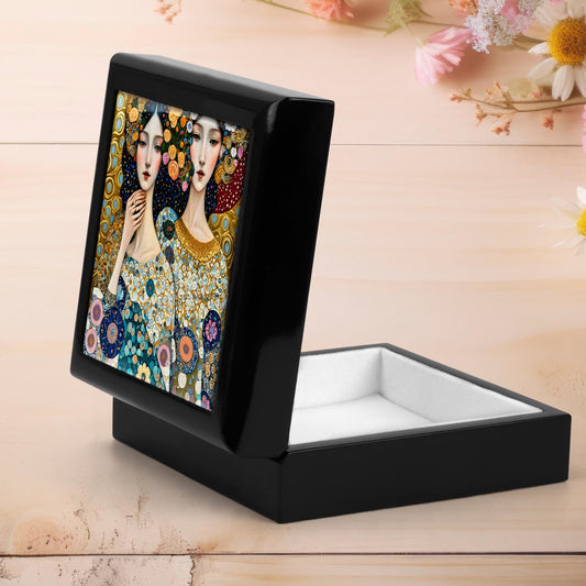 Klimt Style Keepsake Box, Whimsical Ceramic Art Tile Memory Box, Perfect Organizer for Her, Ideal Mother's Day Gift, Ceramic Tile Option