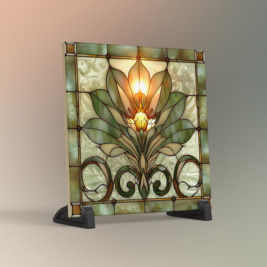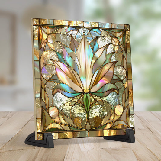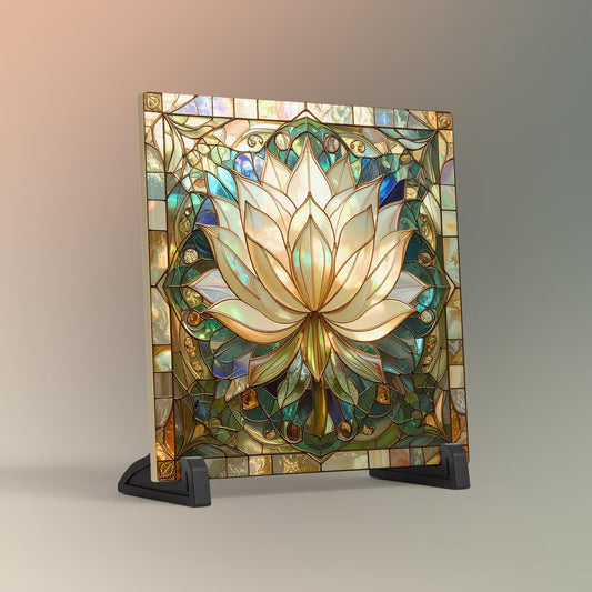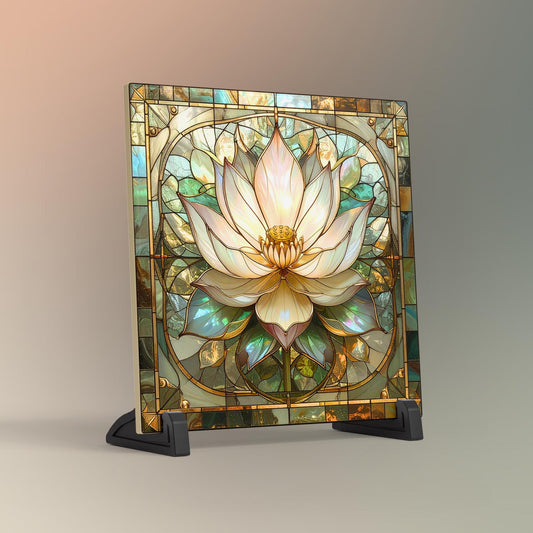 Lotus Flower Ceramic Tile Art II - Stained Glass Look Elegant Flower Wall Decor for Yoga & Meditation, Spiritual Mindfulness Gift - Spa Gift
