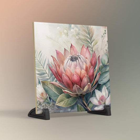 Protea Flower Ceramic Art Tile | Watercolor Wall Decor | Spring Home Decor | Floral Art | Flowers | Wildflowers | Gift for Mom