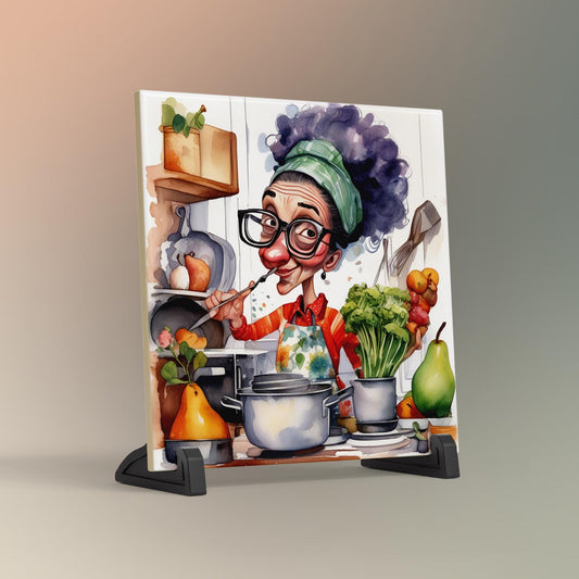 Quirky Cook Ceramic Tile Art, Funny Grandma Kitchen Decor, Stylish Trivet Option, Gift for Mom Home Chef