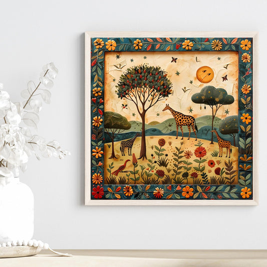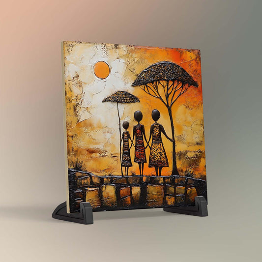 African Safari Ceramic Tile, Folk Art Wildlife Artwork Home Decor, African Aesthetic Spring Decor