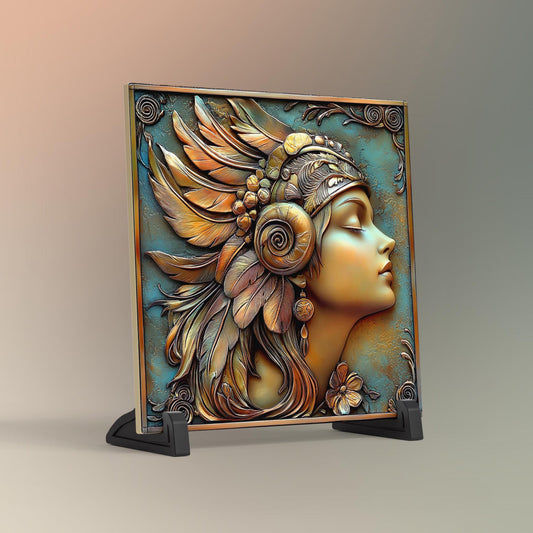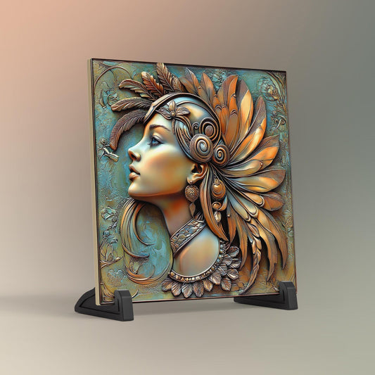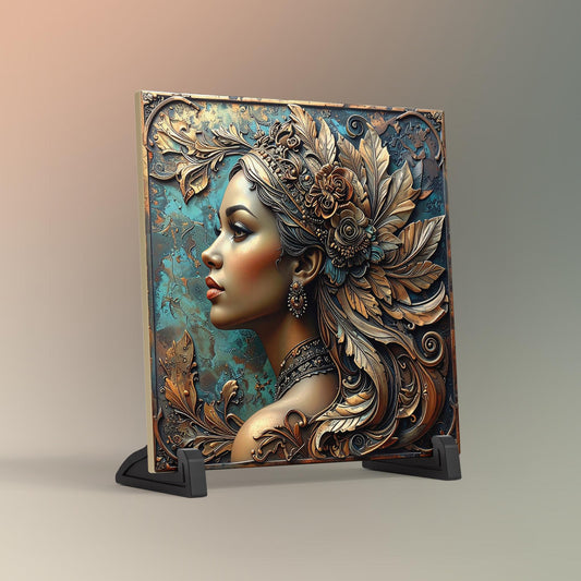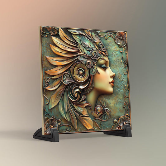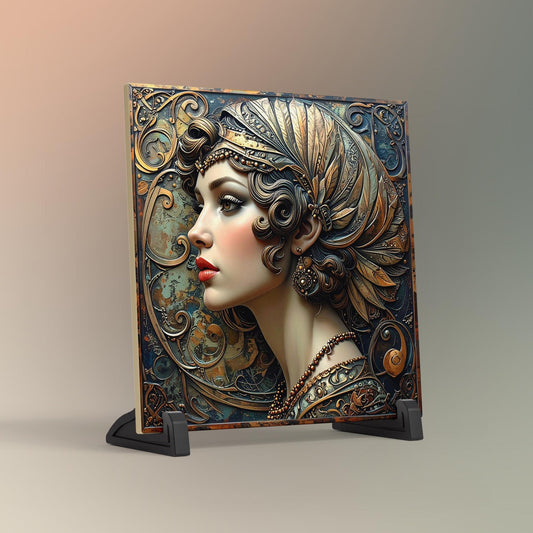 Art Deco Art Tile, Great Gatsby Style Vintage Bronze 1930s Woman, Elegant Wall Decor for Art Nouveau Style, Retro Home Accents