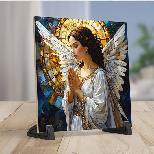 Angel of Hope Ceramic Art Tile | Christian Artwork | Angel Wall Hanging | Religious Print | Christian Gift for Family, Friend and Caregivers