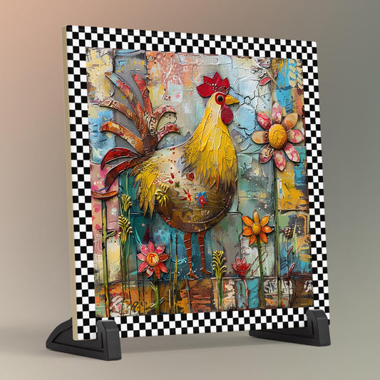 Rooster Folk Art Ceramic Tile | Whimsical Kitchen Decor for Farmhouse Style | Shabby Chic Home Decor