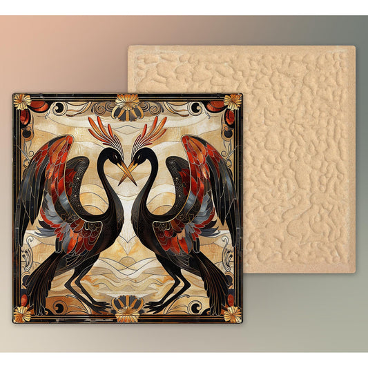 Art Nouveau Birds Ceramic Tile, Vibrant Art Deco Style Decor, Home Decor, Ideal for Wall Art or Gift for Bird Lovers