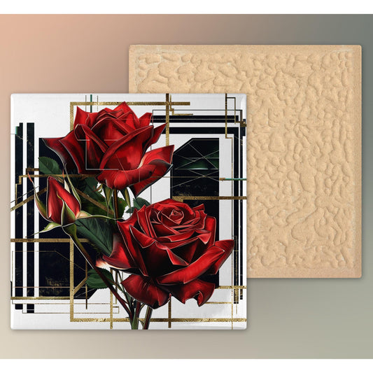 Art Deco Red Rose Ceramic Tile, Art Nouveau, Decorative Tile, Vintage Wall Art, Unique Home Decor