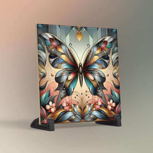 Art Nouveau Butterfly Ceramic Tile, Decorative Art Tile, Beautiful Art Deco Artwork, Unique Home Decor, Gallery Wall Art