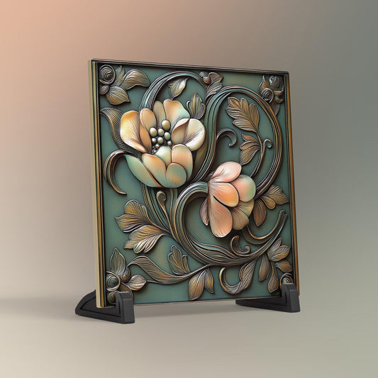 Art Deco Floral Tile, Vintage Bronze Rose Flowers Art, Elegant Wall Decor for Art Nouveau Style, Retro Home Accents