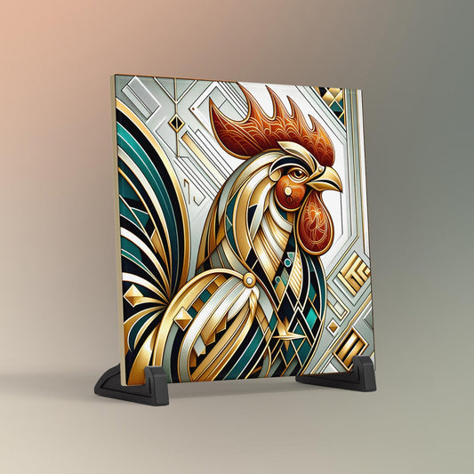 Art Deco Rooster Ceramic Tile** - Whimsical Art Nouveau Style Decor for Your Kitchen - Perfect Gift for Home Chefs