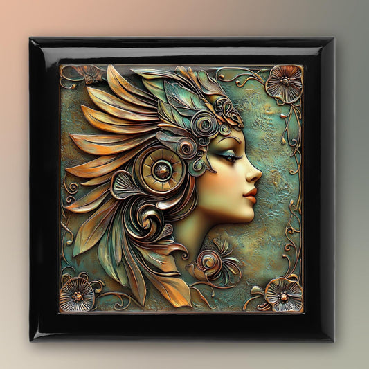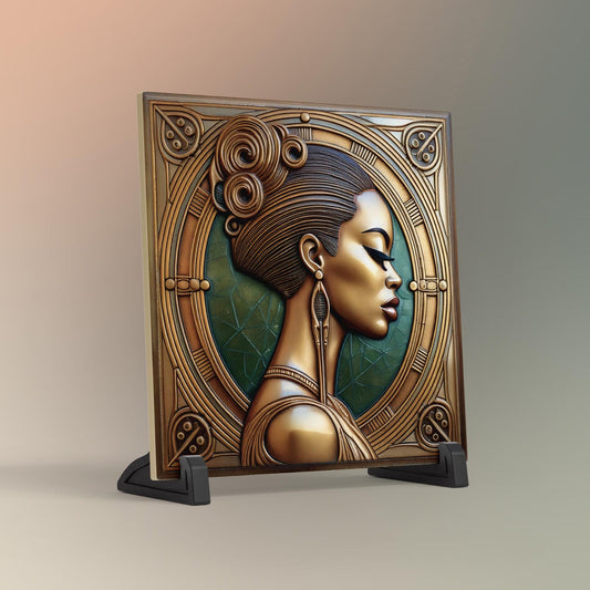 Art Deco Black Woman Art Tile, Vintage Bronze 1930s Woman, Elegant Wall Decor for Art Nouveau Style, Retro Home Accents