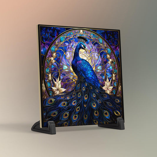 Art Deco Peacock Ceramic Tile | Stained Glass Look | Art Nouveau | Unique Wall Art | Ceramic Wall Decor | Colorful Bird Print