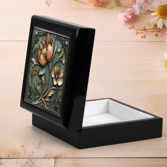 Art Deco Floral Keepsake Box - Ebony Wood Memory Box - Vintage Bronze 1930s Style Jewelry Box - Custom Jewelry Organizer - Mother's Day Gift