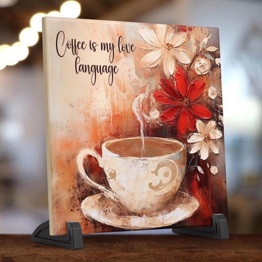 Coffee is My Love Language Ceramic Tile - Beautiful Handcrafted Art for Kitchen Spaces - Ideal Gift for Coffee Enthusiasts - Coffee #1