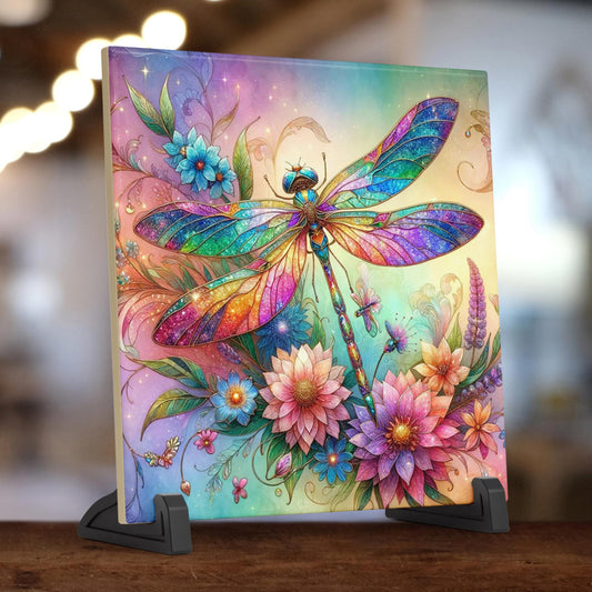 Art Nouveau Dragonfly Ceramic Tile - Stunning Art Deco Ceramic Tile for Decorative Wall Use, Unique Home Decor Gift for Nature Lovers.