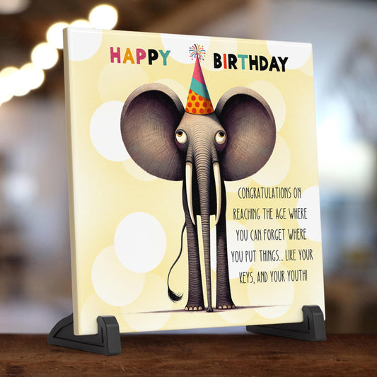 Quirky Elephant Ceramic Tile Birthday Greeting | Happy Birthday Friend Gift | Funny Elephant Birthday Art | Birthday Gift | Quirky Artwork