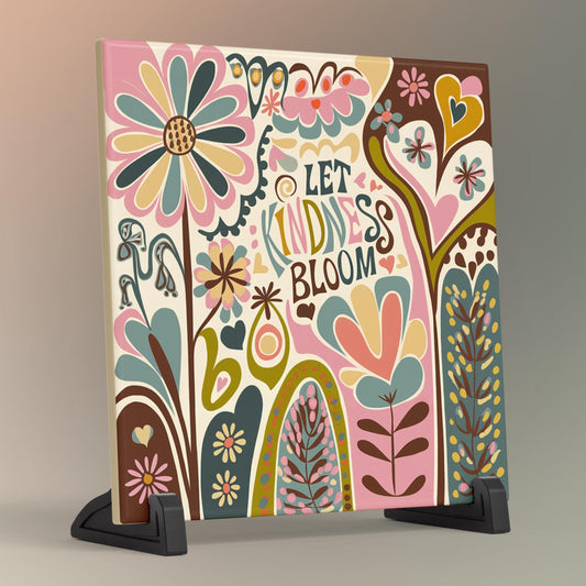 Let Kindness Bloom Ceramic Tile, Flower Art Tile, Floral Boho Wall Decor, Uplifting Gift for Mental Health, Be Kind Quote Artwork