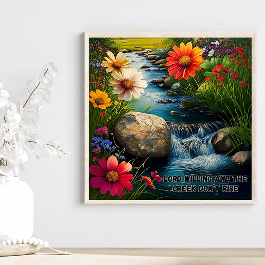 Lord Willing and the Creek Don't Rise Ceramic Tile, Christian Artwork, Tranquil Babbling Brook Nature Artwork, Wildflower Art