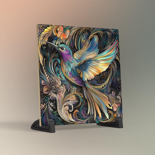 Hummingbird Art Ceramic Tile, Art Nouveau Style, Unique Nature Lovers Decor for Artisan Wall Art, Perfect for Bird Enthusiasts, Art Deco