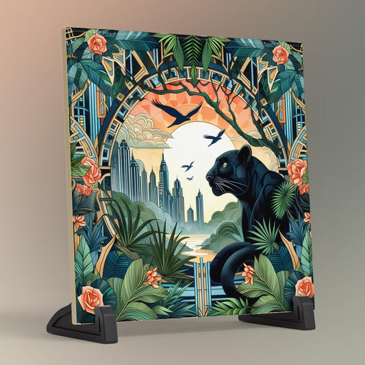 Art Nouveau Panther Ceramic Art Tile, Decorative Tile Inspired by William Morris, Unique Home Decor