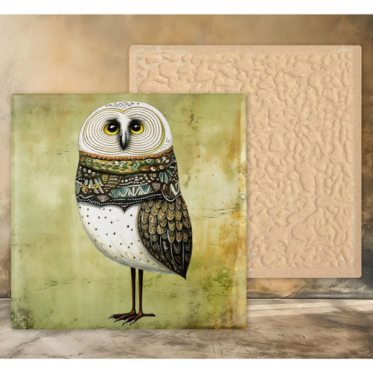 Owl Art Ceramic Tile | Bird Art | Boho | Nature Inspired Wall Hanging | Whimsical Home Decor | Gift For Her | Forest Animals Gift