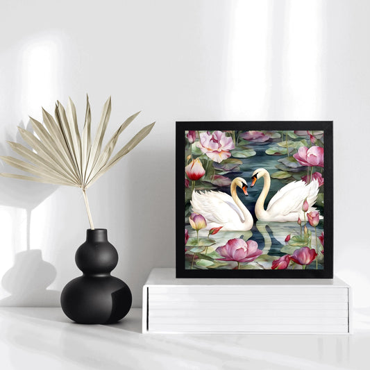 Art Nouveau White Swans Ceramic Tile, Decorative Art Tile, William Morris Inspired Art Deco Artwork, Unique Home Decor
