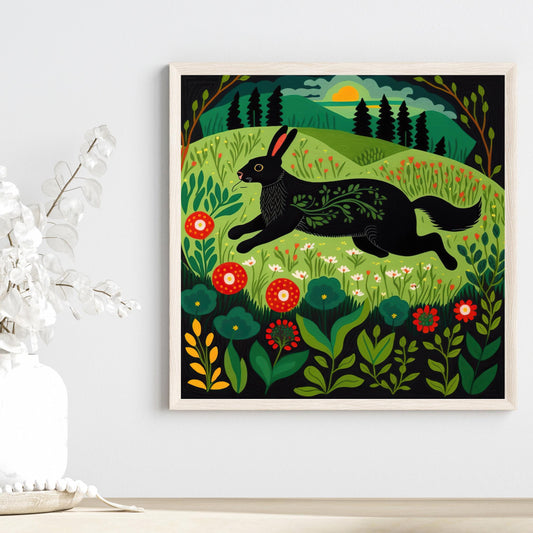 Rabbit Folk Art Ceramic Tile | Rabbit Art | Ceramic Wall Tile | Spring Decor | Bunny Art | Spring Home Decor