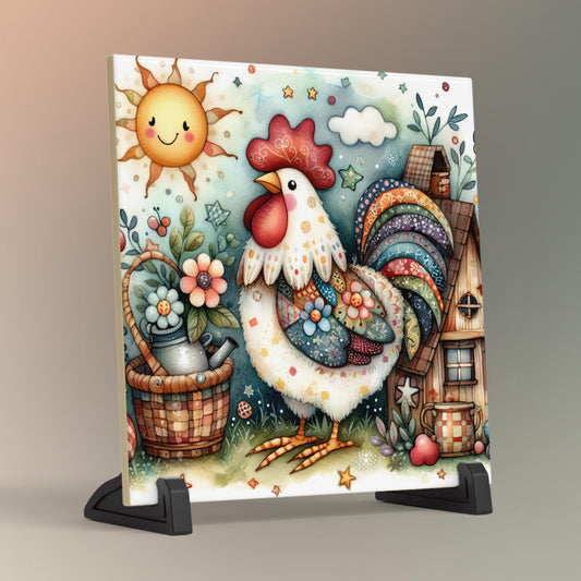 Farmhouse Rooster Ceramic Tile Art | Whimsical Kitchen Decor | Folk Art | Country Chic Rooster Art