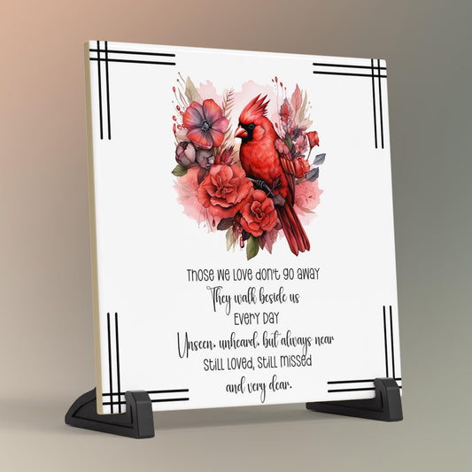 Red Cardinal Memorial Ceramic Tile, Elegant Wall Quote Art for Remembrance, Heartfelt In Loving Memory Gift