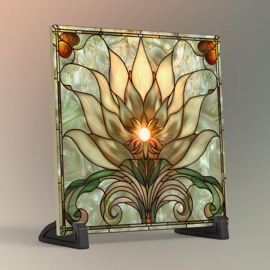Elegant Lotus Flower Ceramic Tile Art | Stained Glass Look Flower Wall Decor | Yoga and Meditation | Spiritual Mindfulness Gift | Spa Gift