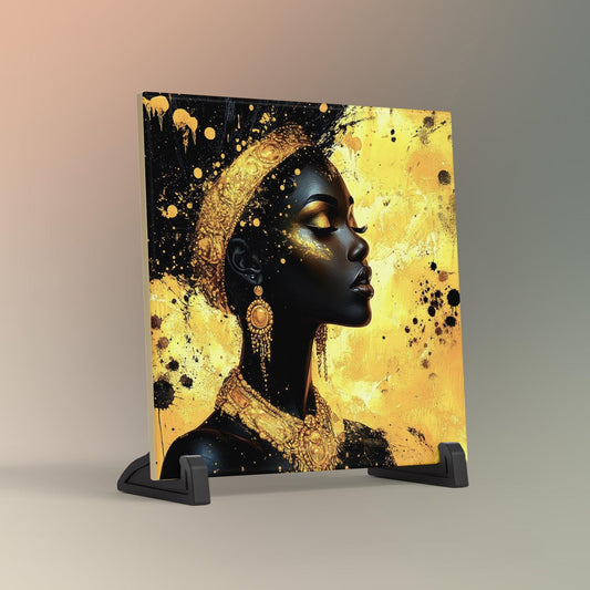 Boho Abstract Black Woman Art - Ceramic Art Tile - Black Wall Art - African Art Print - African American Woman - Unique Gift for Her