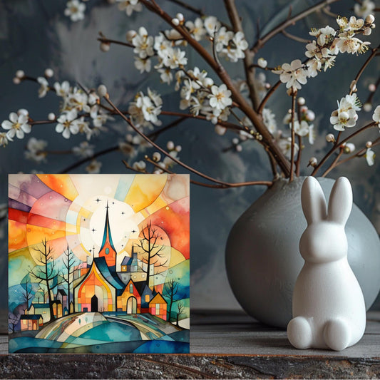 Mosaic Church Art Ceramic Tile, Colorful Religious Wall Decor, Christian Easter Art, Whimsical Religious Decor